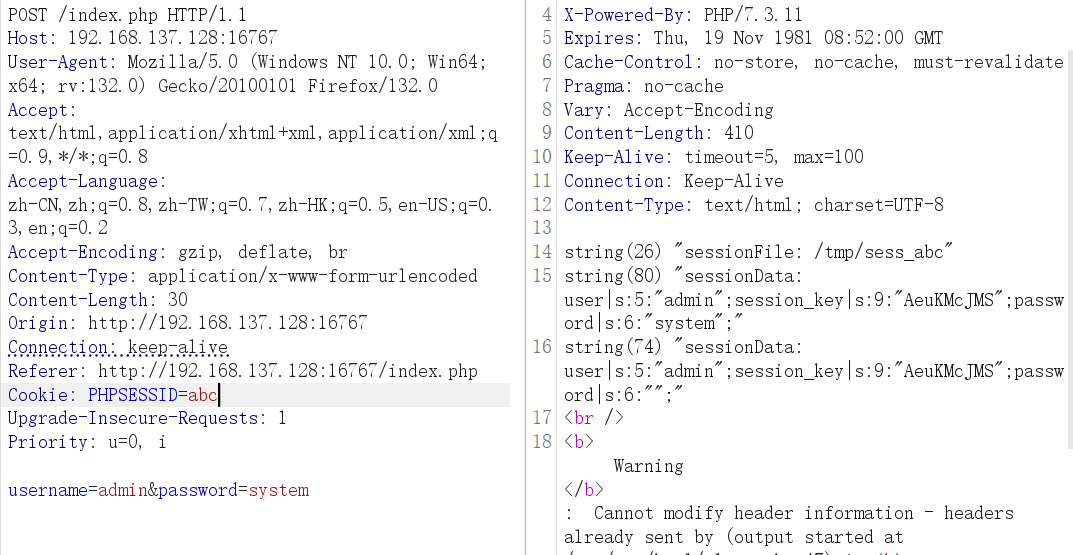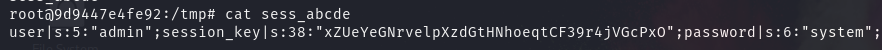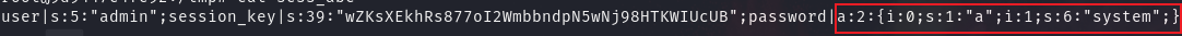 在本地继续测试,输入 admin/system ,按照源码,system 本应该会被替换为空,但是看到本地实际上 session 文件中 password 仍然为 system