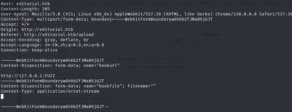 dev@editorial:~/apps$ git diff 1e84a03 b73481b diff --git a/app_api/app.py b/app_api/app.py index 61b786f..3373b14 100644 --- a/app_api/app.py +++ b/app_api/app.py @@ -64,7 +64,7 @@ def index(): @app.route(api_route + '/authors/message', methods=['GET']) def api_mail_new_authors(): return jsonify({ - 'template_mail_message': "Welcome to the team! We are thrilled to have you on board and can't wait to see the incredible content you'll bring to the table.\n\nYour login credentials for our internal forum and authors site are:\nUsername: prod\nPassword: 080217_Producti0n_2023!@\nPlease be sure to change your password as soon as possible for security purposes.\n\nDon't hesitate to reach out if you have any questions or ideas - we're always here to support you.\n\nBest regards, " + api_editorial_name + " Team." + 'template_mail_message': "Welcome to the team! We are thrilled to have you on board and can't wait to see the incredible content you'll bring to the table.\n\nYour login credentials for our internal forum and authors site are:\nUsername: dev\nPassword: dev080217_devAPI!@\nPlease be sure to change your password as soon as possible for security purposes.\n\nDon't hesitate to reach out if you have any questions or ideas - we're always here to support you.\n\nBest regards, " + api_editorial_name + " Team." }) # TODO: replace dev credentials when checks pass # -------------------------------