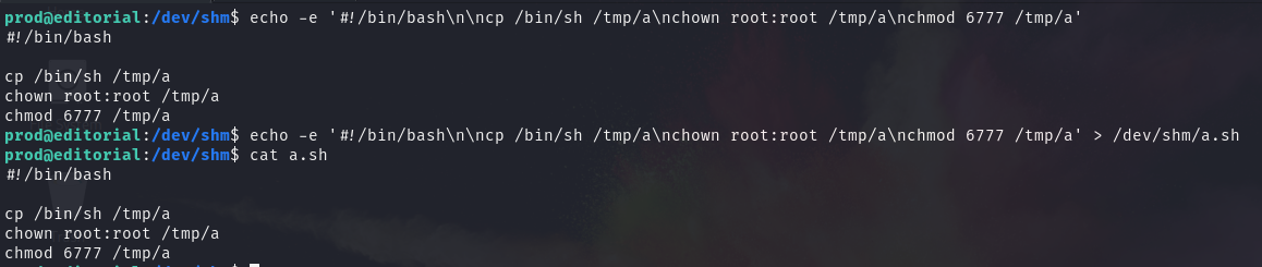 dev@editorial:~/apps$ git log --oneline 8ad0f31 (HEAD -> master) fix: bugfix in api port endpoint dfef9f2 change: remove debug and update api port b73481b change(api): downgrading prod to dev 1e84a03 feat: create api to editorial info 3251ec9 feat: create editorial app