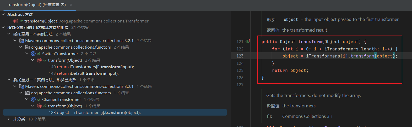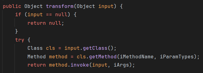ChainedTransformer chainedTransformer = new ChainedTransformer(transformers); chainedTransformer.transform(null); } }
