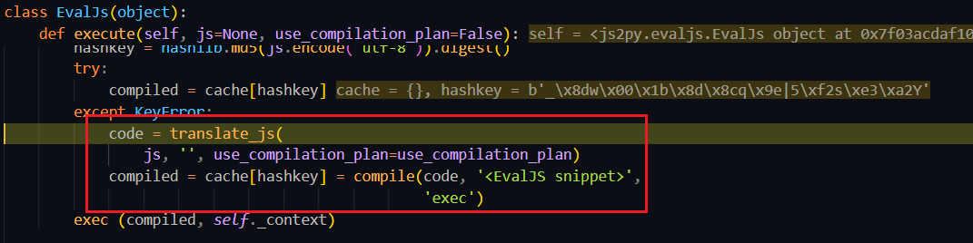 随后跟进 execute(),在 195 行调用 js2py/translators/translator.py::translate_js()