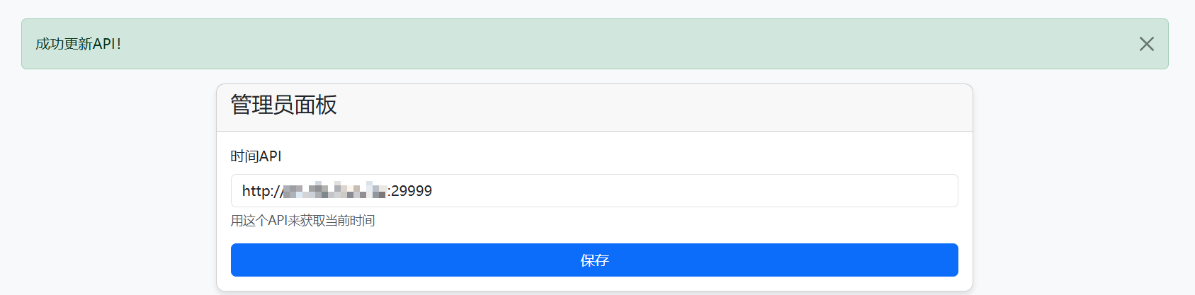 1 2 3 4 5 6 7 8 9 10 11 12 13 @app.route('/admin/settings', methods=['GET', 'POST']) @admin_required def admin_settings():     user = User.query.get(session['user_id'])          if request.method == 'POST':         new_api = request.form.get('time_api')         user.time_api = new_api         db.session.commit()         flash('成功更新API!', 'success')         return redirect(url_for('admin_settings'))     return render_template('admin_settings.html', time_api=user.time_api)