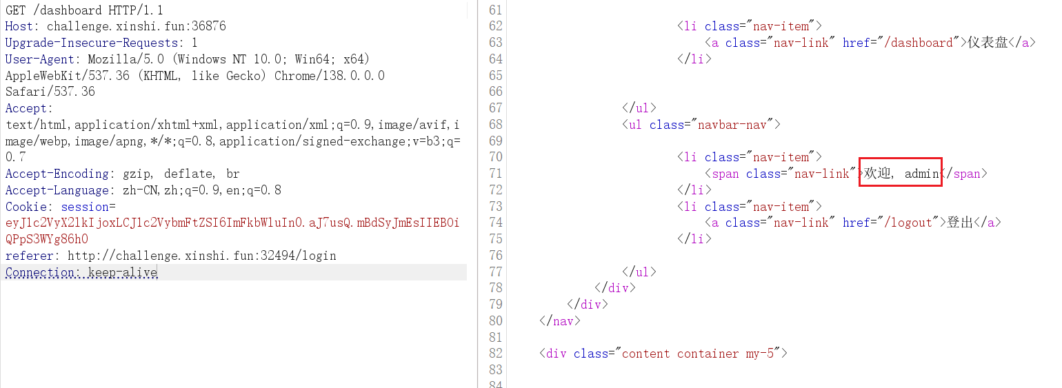 发现密钥明文存储,且 session 存储,Flask 默认就是 session,PHP 原生会话是 PHPSESSID,JWT 往往是自定义的 Cookie