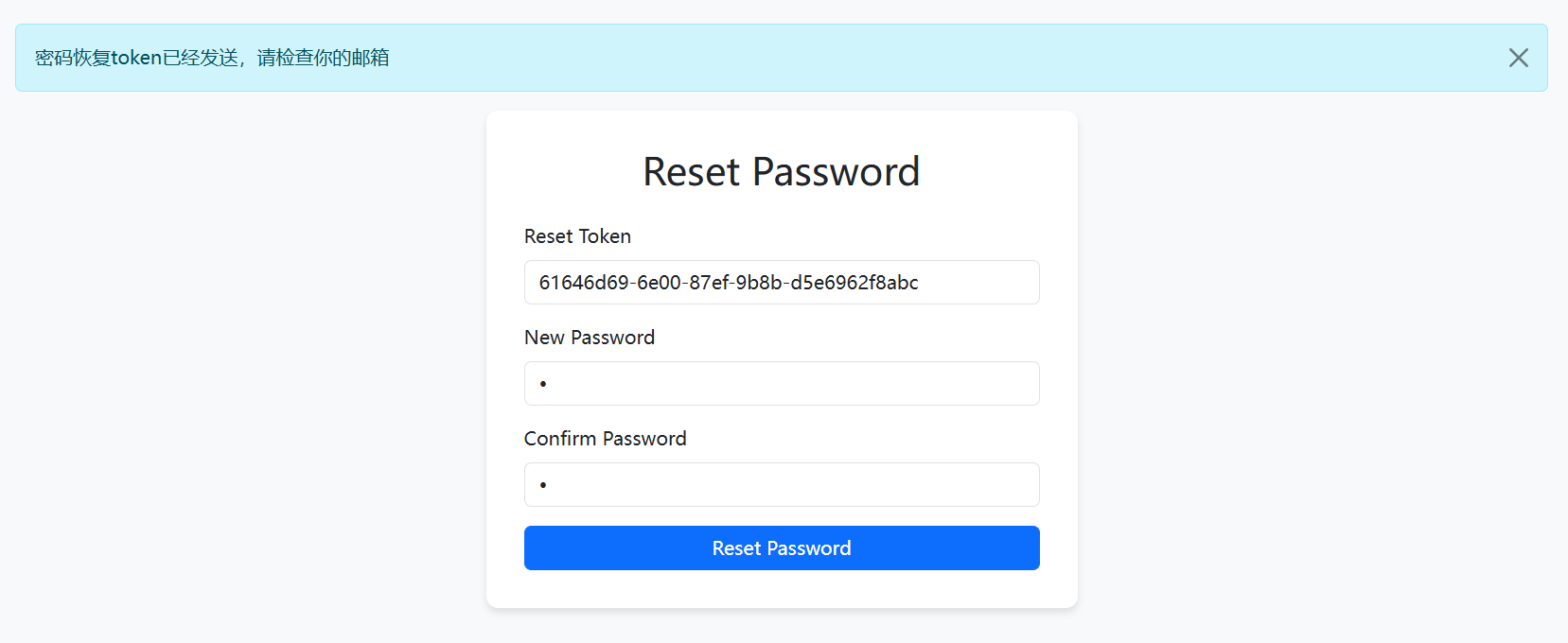 1 2 3 4 5 6 7 8 9 10 11 12 13 14 15 16 17 18 19 20 21 22 23 24 25 26 @app.route('/forgot_password', methods=['GET', 'POST']) def forgot_password():     if request.method == 'POST':         email = request.form.get('email')         user = User.query.filter_by(email=email).first()         if user:             # 选哪个UUID版本好呢,好头疼 >_<             # UUID v8吧,看起来版本比较新             token = str(uuid.uuid8(a=padding(user.username))) # 可以自定义参数吗原来,那把username放进去吧 			      => # padding 方法 					def padding(input_string): 					    byte_string = input_string.encode('utf-8') 					    if len(byte_string) > 6: byte_string = byte_string[:6] 					    padded_byte_string = byte_string.ljust(6, b'\x00') 					    padded_int = int.from_bytes(padded_byte_string, byteorder='big') 					    return padded_int             reset_token = PasswordResetToken(user_id=user.id, token=token)             db.session.add(reset_token)             db.session.commit()             # TODO:写一个SMTP服务把token发出去             flash(f'密码恢复token已经发送,请检查你的邮箱', 'info')             return redirect(url_for('reset_password'))         else:             flash('没有找到该邮箱对应的注册账户', 'danger')             return redirect(url_for('forgot_password'))