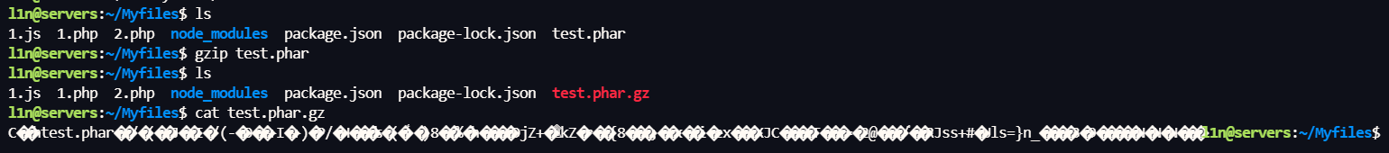 已知程序提供文件上传和文件包含接口DeadsecCTF 2025 赛关于 include 与 phar 特性的利用,生成一个 phar 文件把他打包成 gz 文件后,当 include 包含 gz 文件时,php 会默认把这个 gz 文件解压回 phar 进行解析,而压缩后的 gz 文件不存在明文关键字,可以绕过许多黑名单phar,并压缩为 gz